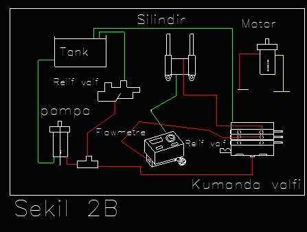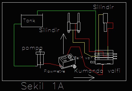 2.1 – T Dirsek pompa ve kumanda valfi arasına, diğer T ucu flowmetre girişine, flowmetre çıkışı da tanka bağlanır. Bu sırada yükleme valfi açık olmalıdır.